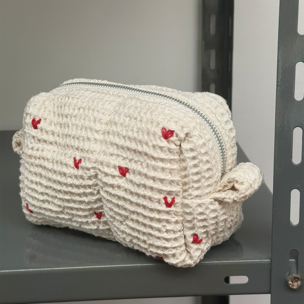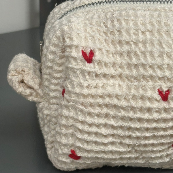 Neceser confeccionado en waffle marroquí 100% algodón, bordado a mano en series limitadas.